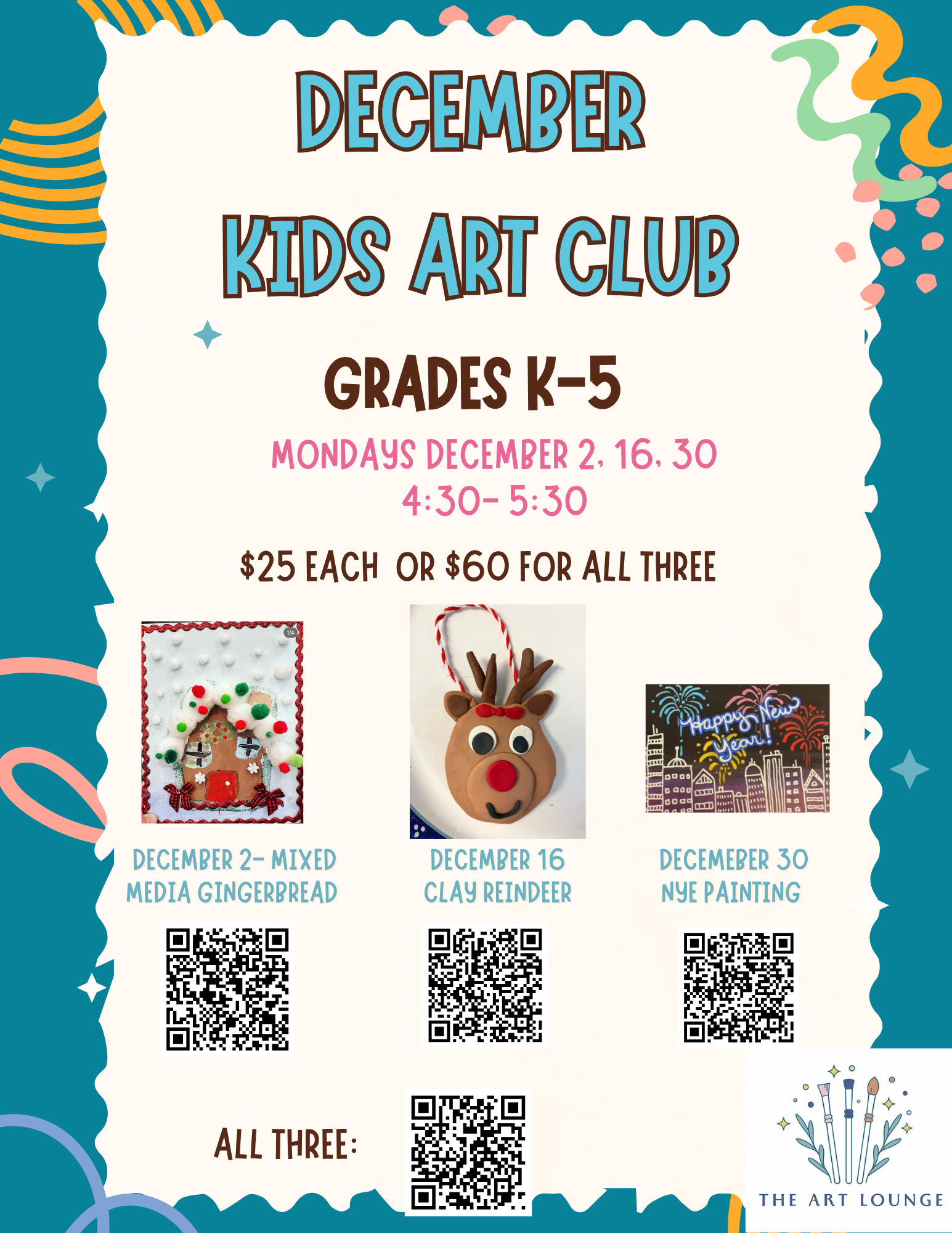 Come create a mixed media Gingerbread house using lots of papers, glue, paint and gems!